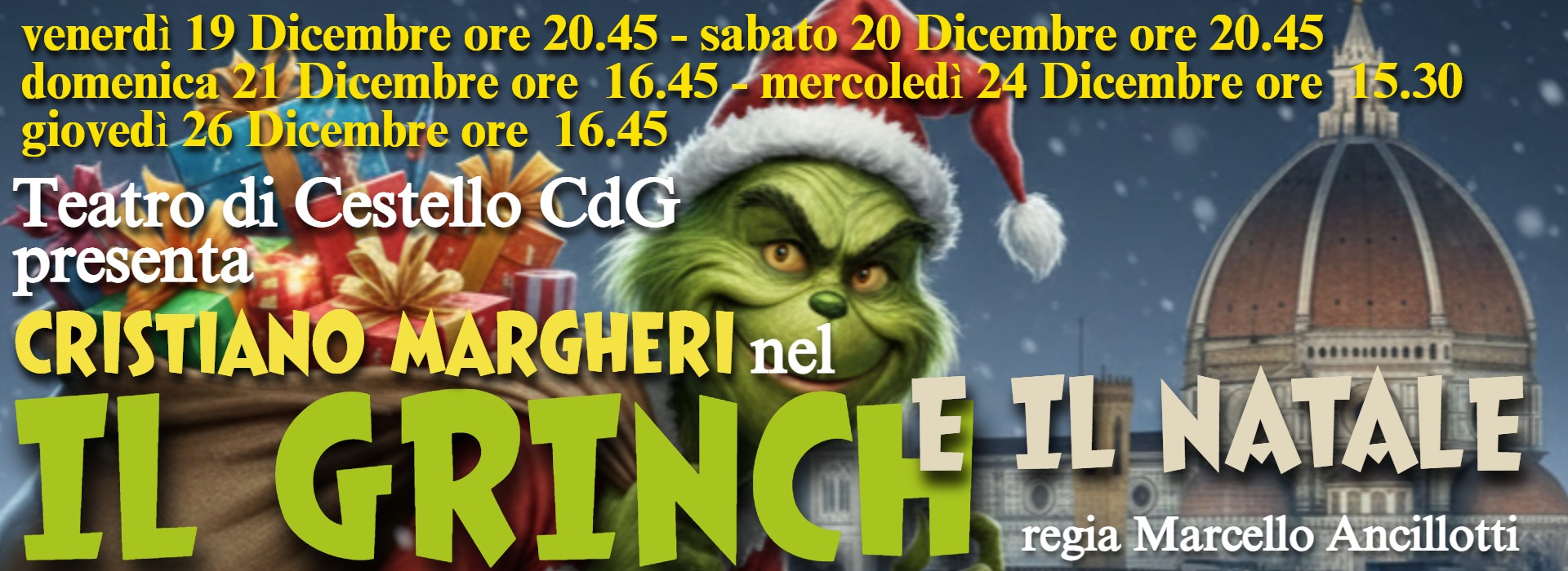 Venerdì 19 Dicembre 20.45 Sabato 20 Dicembre 20.45 Domenica 21 Dicembre 16.45 Mercoledì 24 Dicembre 15.30 Venerdì 26 Dicembre 16.45 TEATRO DI CESTELLO CdG in...